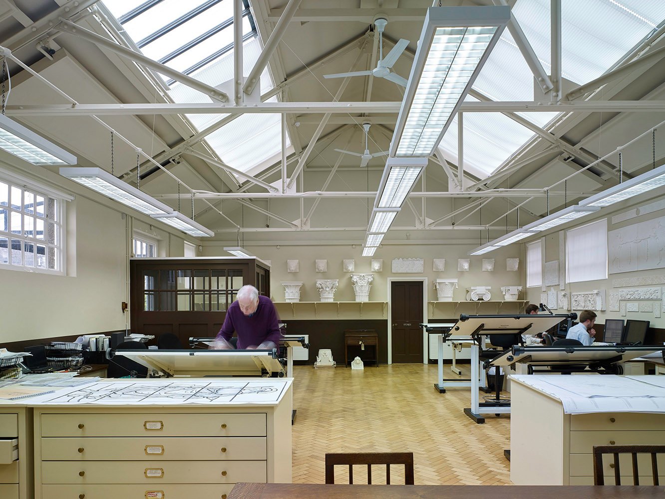 The restoration of a historic former post office as offices for the Practice. The building is almost unique in having been built in 1936 during the reign of Edward VIII, and is a classic example of the Neo-Georgian style employed by the Office of Works in the 1930s for government buildings. The surviving high-quality interiors were restored to their original appearance, including the reinstatement of the polished post office counter, and refurbishment of the former sorting office, perfectly suited as a drawing office for the Practice.