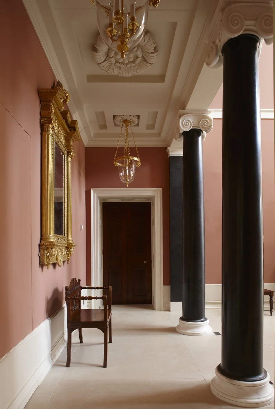 The restoration and extension of a historic country house, previously altered in the 1790s by Sir John Soane. The house had been unsympathetically reduced in size in the 20th-century, disrupting Soane’s composition. The project included a new extension to restore order to the façades and provide additional accommodation, as well as a full restoration of the historic building. Externally the new extension draws on Michelangelo’s work in Florence, as well as making reference to the work of Soane and C. R. Cockerell. Internally, it provides a dramatic top-lit staircase in a new entrance hall and a modern family kitchen.
